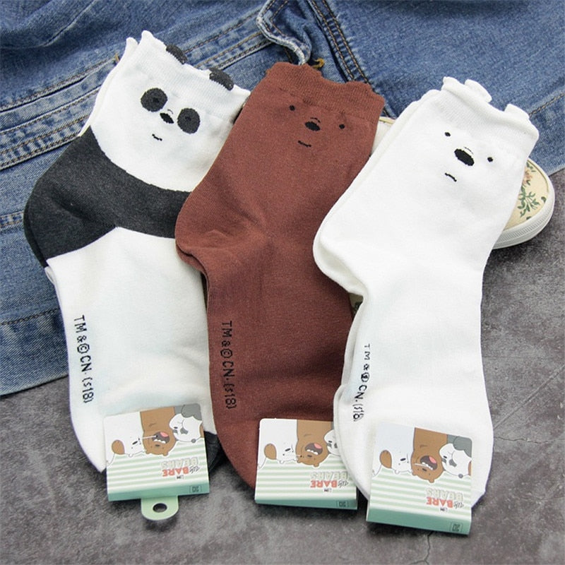 3 Pairs New Cute We Bare Bears Socks Women Soft Breathable Cotton Socks Ankle-High Casual Socks Fashion Style Cartoon Sock